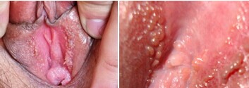 3、假性湿疣潜伏期3天-3周,有自限性,一般无症状,有的局部瘙痒。多见两侧小阴唇对称性分布,少见两个部位同时发生,病变呈鱼子样或珍珠样小丘疹。