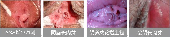 典型症状:小颗粒、小丘疹、小肉粒、小疙瘩、长肉芽、长肉刺、长菜花、乳头状、鸡冠状、赘生物。
