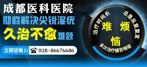 成都医科医院泌尿病毒科专家指出,尖锐湿疣的治疗方法有很多如:药物治疗、激光治疗、光动力治疗、冷冻治疗、深浅层排毒都是治疗湿疣疾病好的方法。但每个患者的病情程度不同,因此治疗的效果也会有所不同。感染尖锐湿疣后,一定要到正规性病医院进行治疗否则错过最佳治疗时机会造成病情恶化。>>>你目前接受过哪些方法的治疗?点击咨询专家!