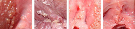 起初为小淡红色丘疹,单个或群集分布,湿润柔软,症状多不明显,可仅为数个针头样大的损害,出现阴部痛痒不适。后小丘疹逐渐长大,表面呈凹凸不平的柔软乳头样病变。